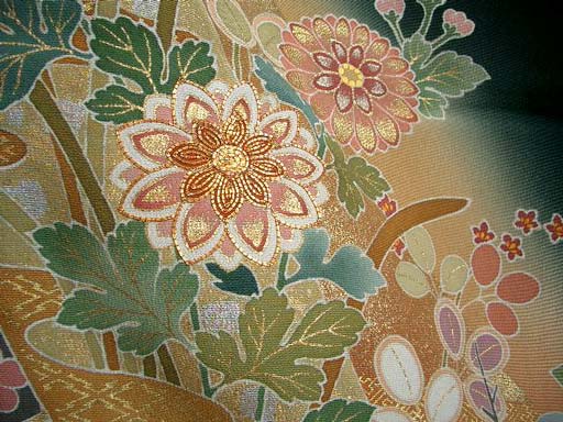 ◆ 菊の花や葉などに、金を使った友禅や刺繍が豪華な柄です。