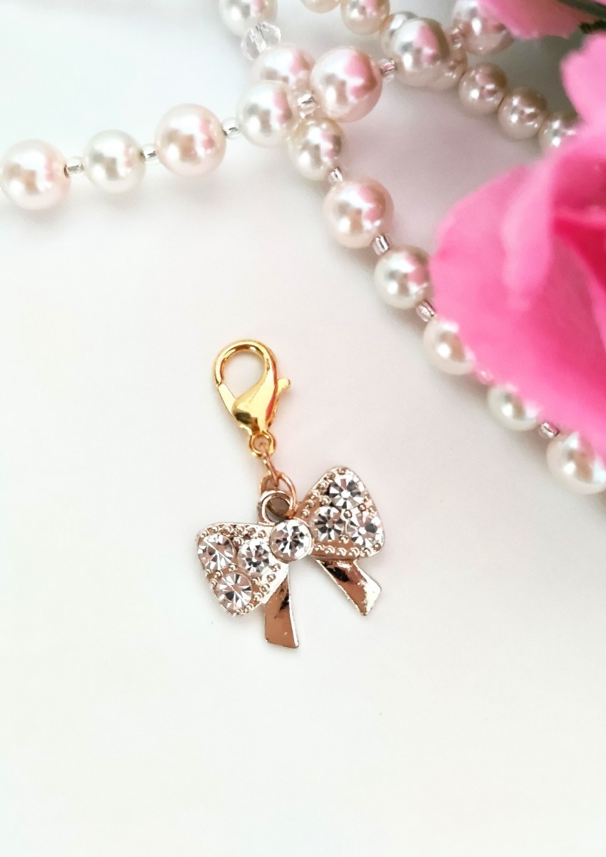 ハンドメイド マスクチャーム ファスナーチャーム りぼん ラインストーン 揺れる 可愛い 收藏