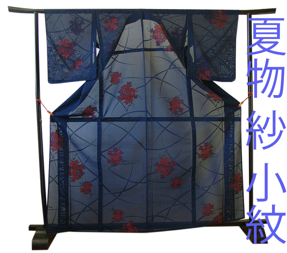 | 商品説明 | こちらのお品は夏物でございますので、7月~8月にお召頂ければと思います。 「紗」と言えば、絽と双璧を成す夏のお着物の生地で、 その最大の魅力は絶妙の透かし加減でございます。 清涼感溢れる地の風を通すしなやかさは、夏に着物を着るという贅沢を 快適に愉しませてくれる事でしょう。 着物には、大きく分けて「袷(あわせ)の着物」と「単衣(ひとえ)の着物」と「夏着物」があります。 反物(表地)を着物に仕立てるときに、裏地類をつけるものを袷の着物、 つけないものを単衣の着物と呼び、胴裏や八掛といった裏地がつかない一枚ものの着物です。 また裏地がないため、座る時などにヒップのラインが目立たないよう、 居敷当て(いしきあて)の生地をつけることもあります。 居敷当ては付いておりません。 しなやかなさらっとした肌触りが極上の着心地を誘う滑らかな「紗」の生地、 紺色地に朱赤色の花草柄、 また、バチ衿仕立てとなっております。 女性の美しい表情と凛とした麗しさを醸す洒落感高い印象を身に着ける逸品です。 |