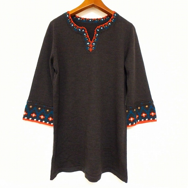 #wnc レリアン Leilian チュニック 7 焦げ茶 マルチ ニット 柄 刺繍 レディース [921379] 收藏