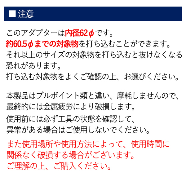 ラクダ 電動ハンマー用 打込アダプター A型 削り出しタイプ 30H×265mm 内径62Φ 收藏