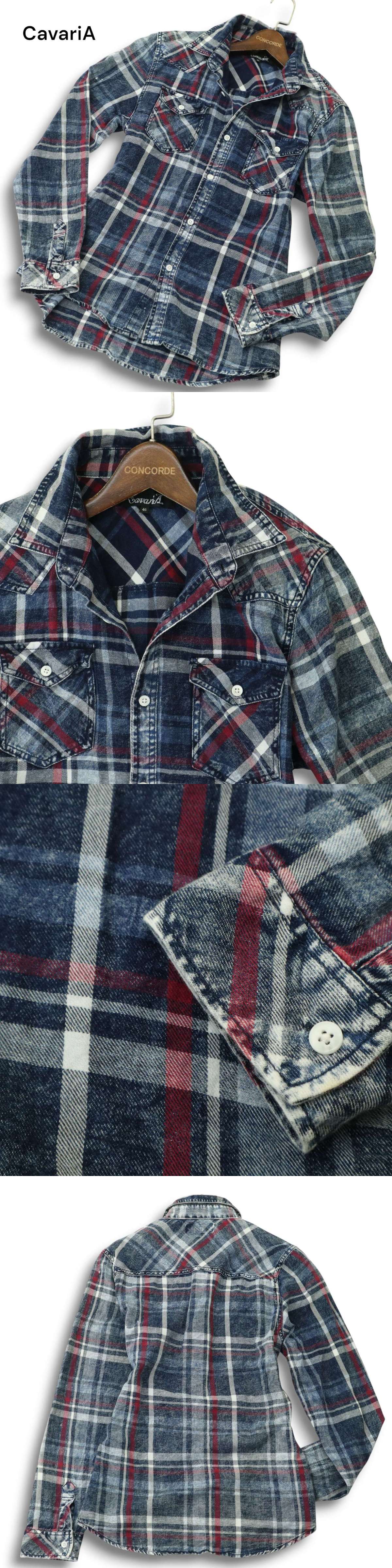 CavariA キャバリア 通年 ウォッシュ加工★ 長袖 ウエスタン インディゴ チェック シャツ Sz.46 メンズ A5T02611_3#C 收藏