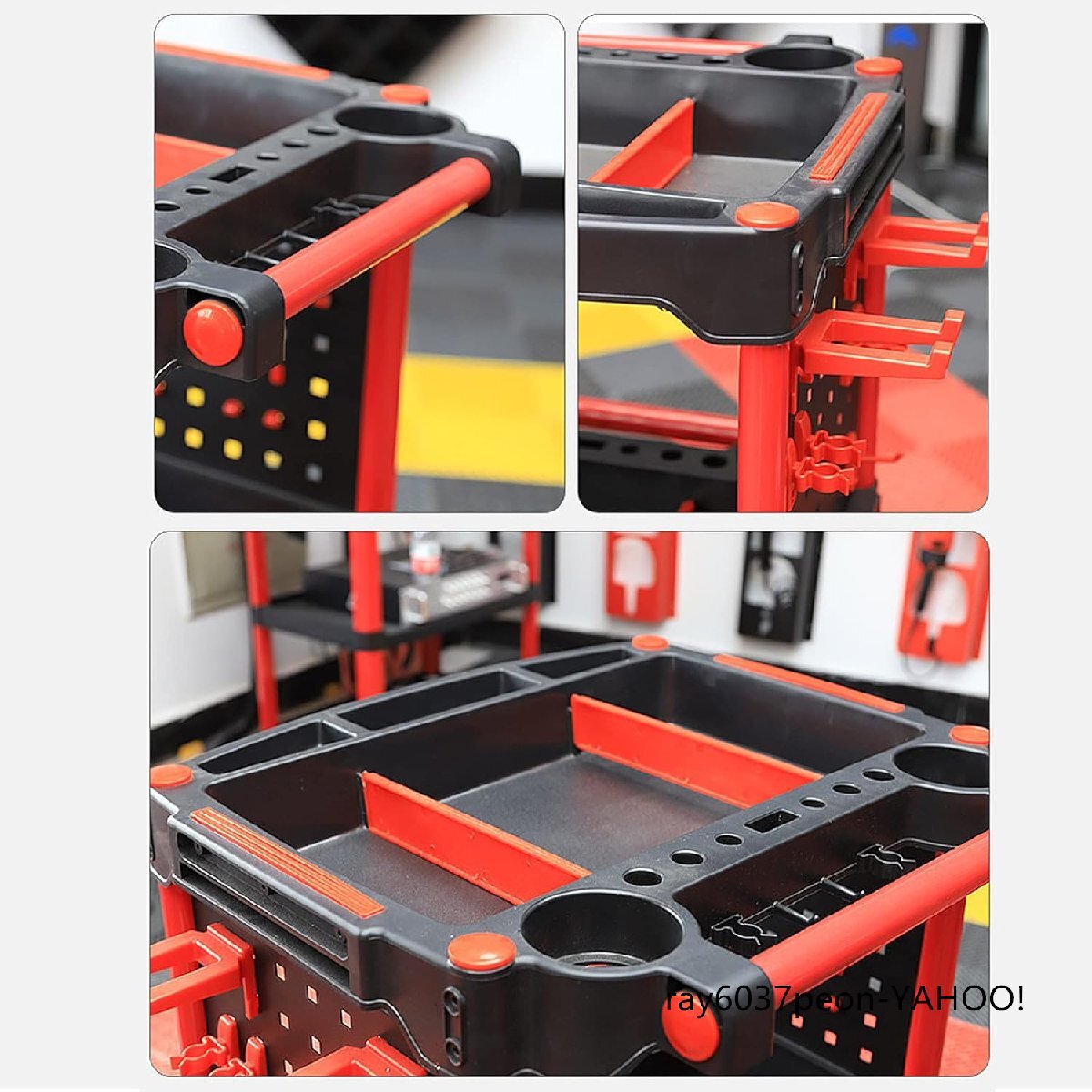 ツールワゴン 3段 レッド 収納トロリー 洗車用具入れ 工具棚 サスペンションプレート フック付き カーディテイリングショップ用 收藏