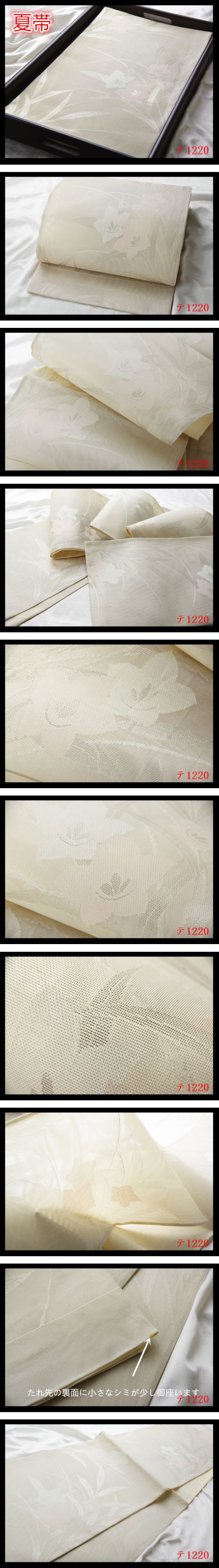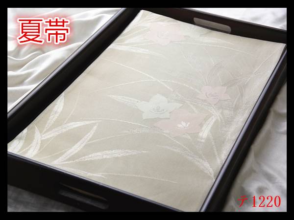 蔵【テ1220】西陣逸品 夏帯 紗 桔梗文 象牙色地 透かし 気品豊かに 六通高級美術袋帯 新品同様 ◇検簪着物名古屋帯和装小物帯締め 收藏
