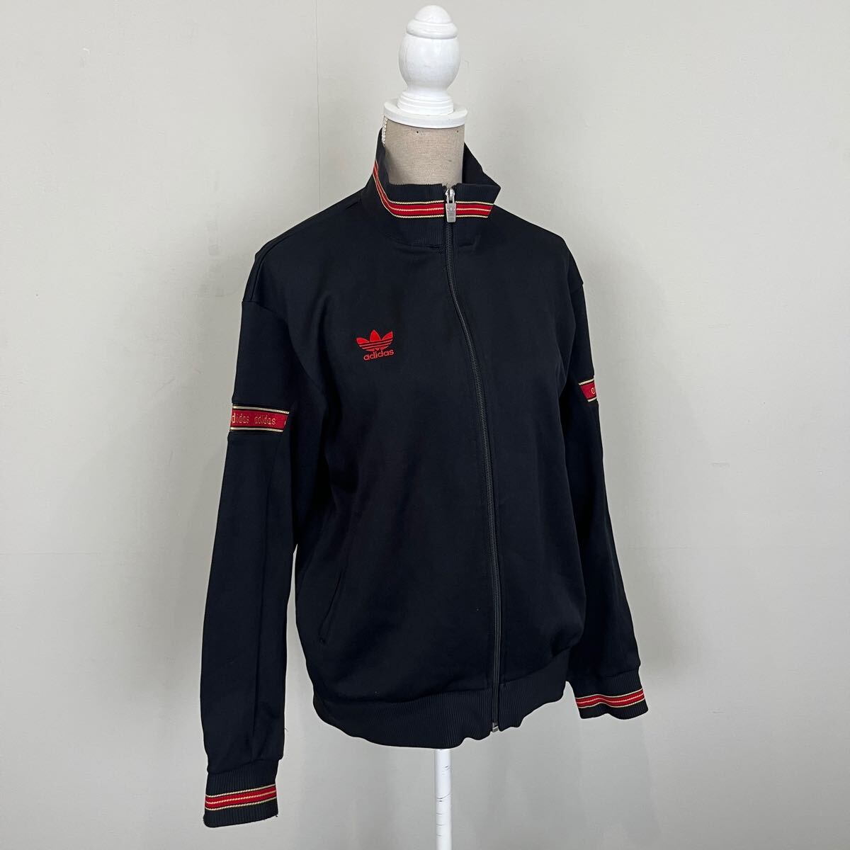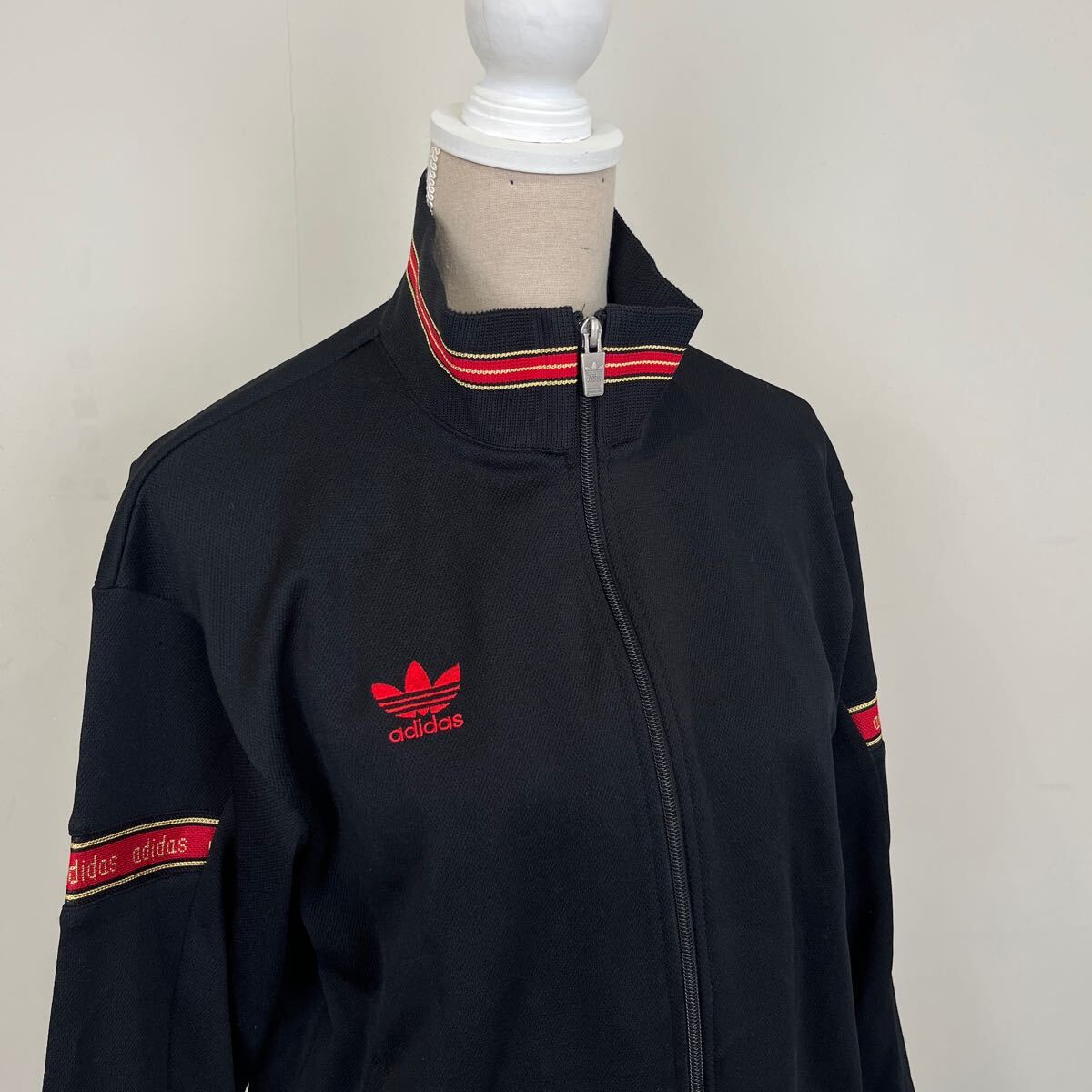 adidas アディダス トラックジャケット ジャケット ジャージ トレフォイルロゴ トラック 黒トラックジャケット 刺繍赤ロゴ 黒×赤×金 收藏