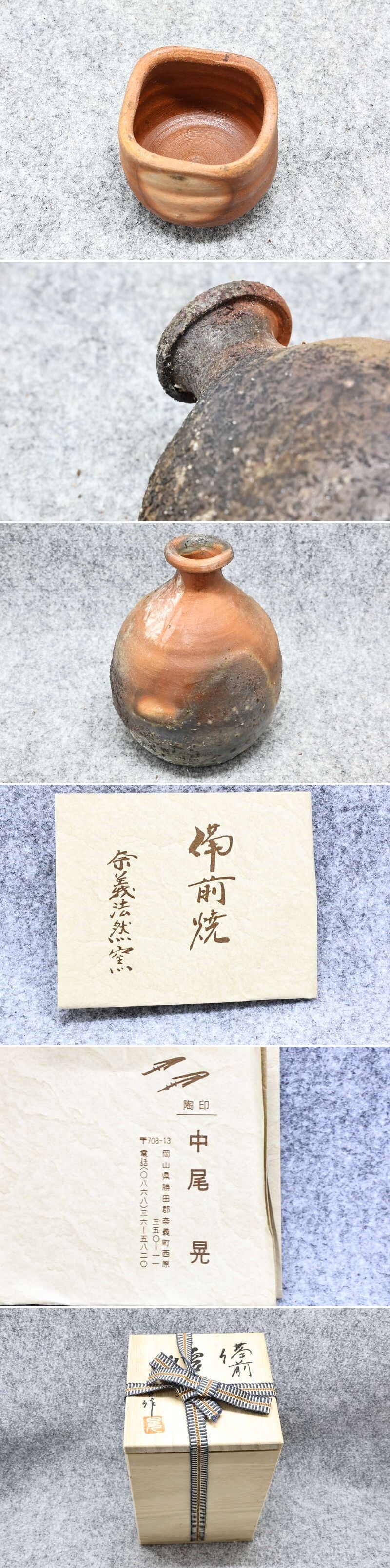 wg5802 旧家蔵出☆未使用◆備前 徳利 猪口◆とっくり ちょこ★奈義法燃窯◆中尾晃 荒々しく、どっしりとした作りです 收藏