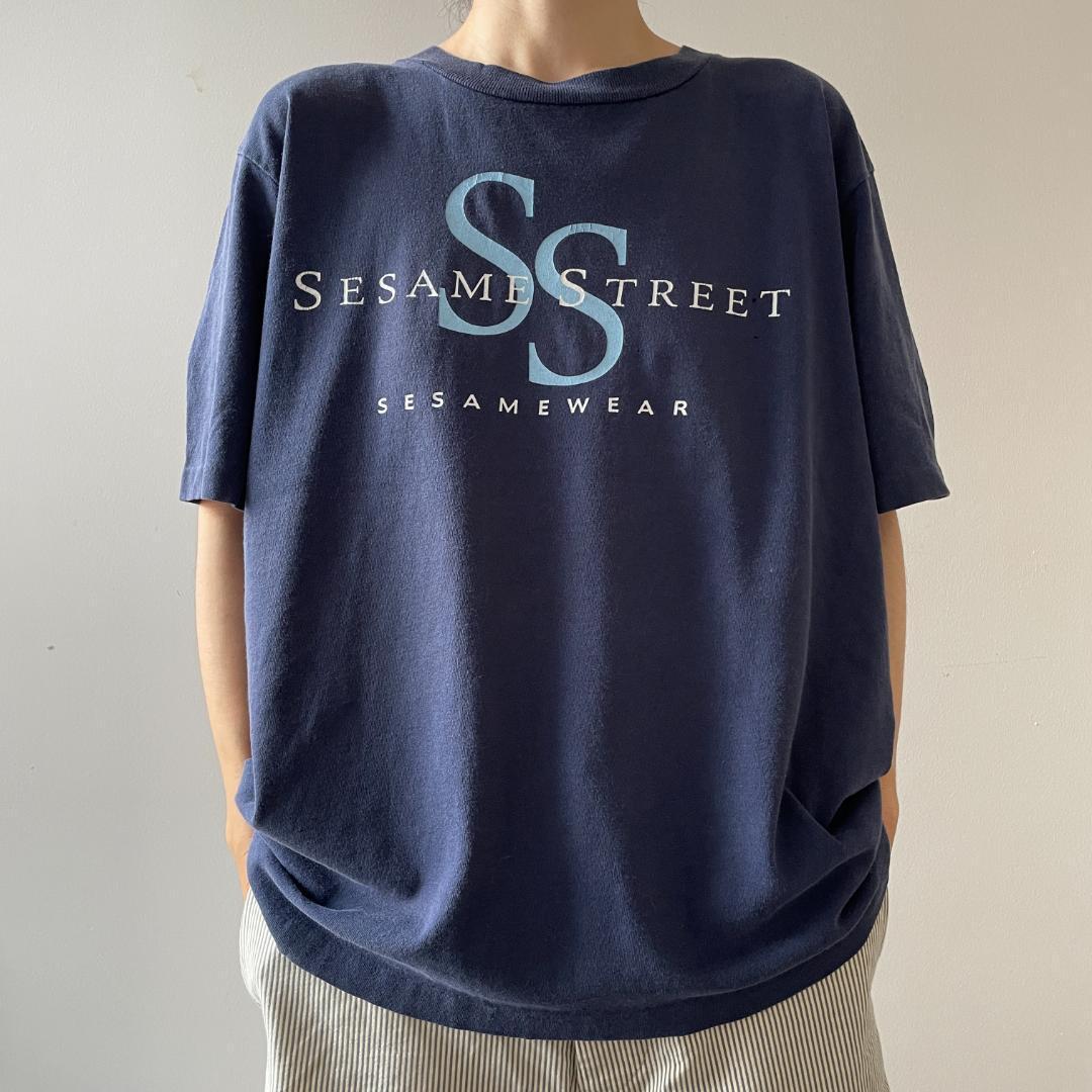 GG314 90s シャツ 全員集合セサミストリート パロディ Sesame Street CK USA製 ビンテージ 古着 シングルスチック Lサイズ changesタグ 青T 收藏