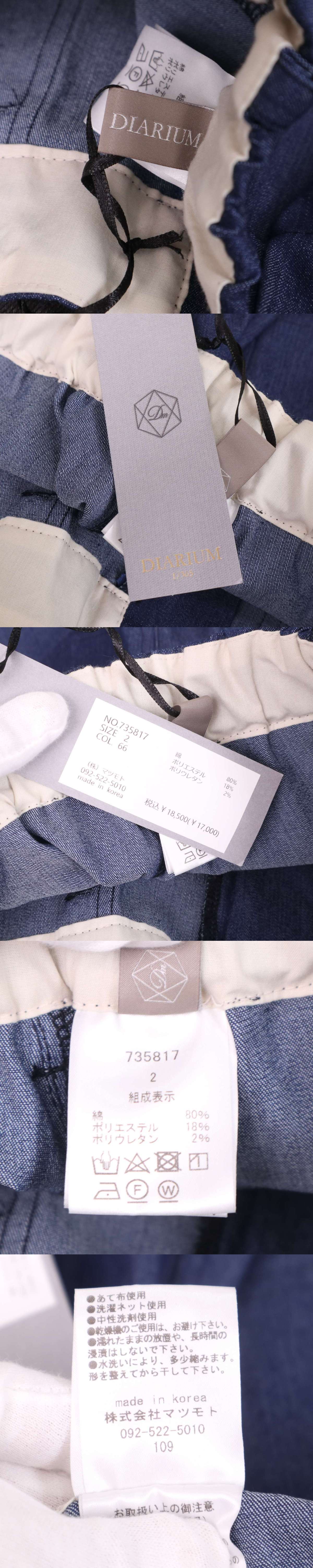 【新品 未使用】 DIARIUM ディアリウム 通年 ストレッチ★ テーパード デニム スラックス パンツ Sz.2 レディース 收藏
