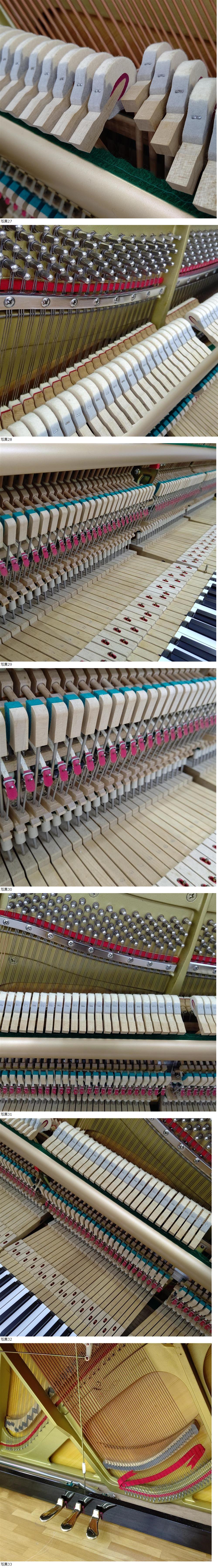 | ◆内部機能の調整(整調作業)は各項目にわたりチェックし、必要な調整作業を施しています。画像51【調律/整調チェックシート】参照 ◆外装は各部品を分解して個々に研磨美装し組み上げているのできれいに仕上がっています。 ◆内部・裏側は専用器具で丁寧にクリーニングをしました。特に鍵盤はお子様がお使いになることを想定し、念入りに3回の作業工程(除菌含む)で仕上げています。画像53.54 (Cleaning画像はイメージです同等の作業を行っています) お越しいただいた方にいつでも試弾していただけるよう調律をしていますが、運搬時の振動による影響も考えられますので、搬入後に状態をみて落札者様で実施されることをお勧めします。ピアノは内・外装とも丁寧にチェックして出荷いたします。 | ||