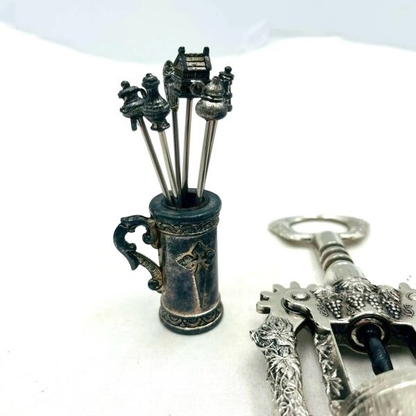 ヨーロピアンデザインの装飾付きヴィンテージ風「栓抜き&ピックセット」です
