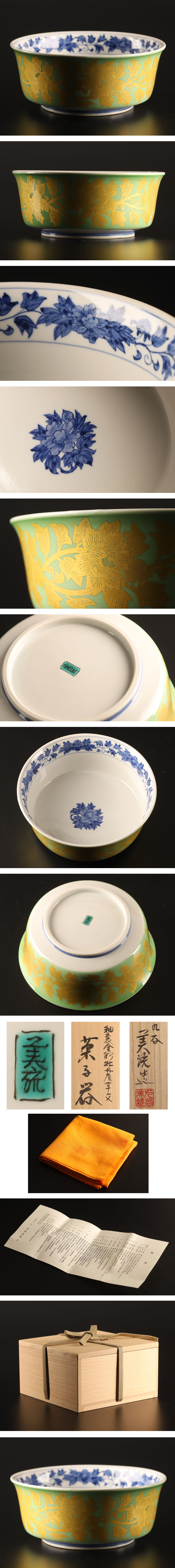 【流】九谷焼 吉田美統 釉裏金彩牡丹唐草文 菓子器 共箱 UC939 收藏