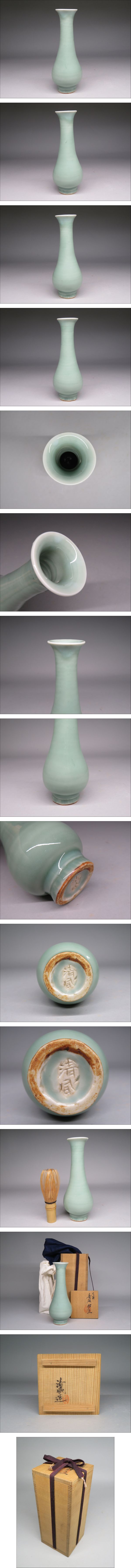 茶道具◆京焼 帝室技芸員 三代「清風与平」造 下蕪 青磁杓立 共箱付/ 青磁花瓶 花入れ 茶道具 lot:101203 收藏