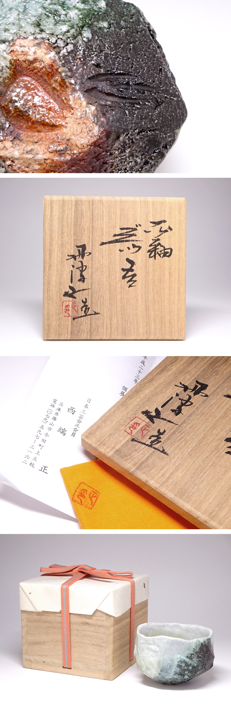 慶應◆現代丹波焼の代表格【西端正】作 灰釉 ぐい呑み 酒盃 酒器 共箱付 收藏