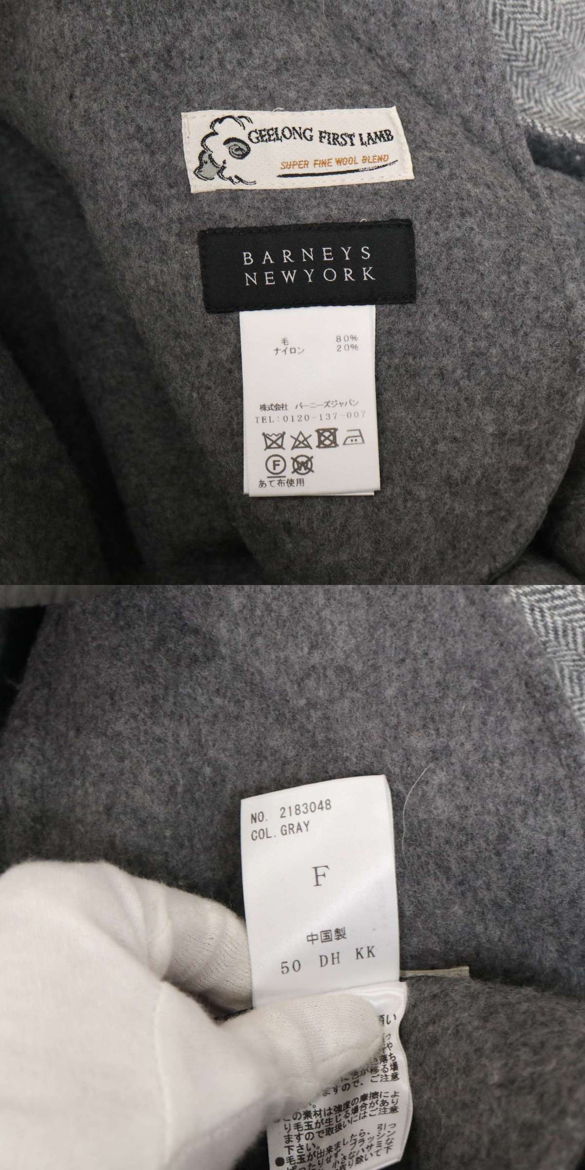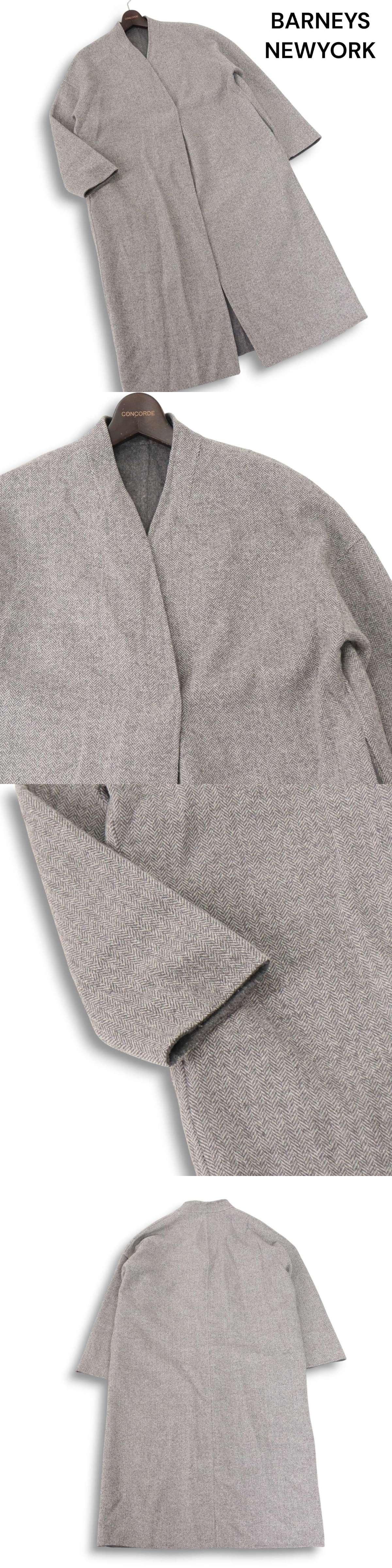 BARNEYS NEWYORK バーニーズ ニューヨーク 秋冬★ ウール ツイード ヘリンボーン ノーカラー コート Sz.F レディース グレー 收藏