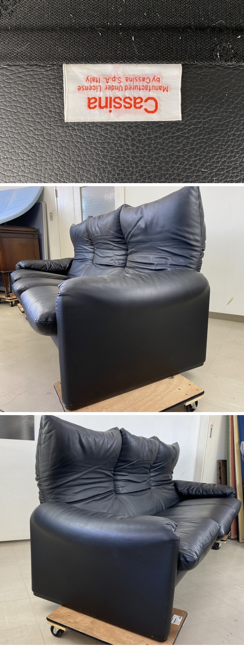 i1821 Cassina カッシーナ 675 MARALUNGA マラルンガ 3人掛け ソファ 黒 本革 アームソファ レザー 收藏