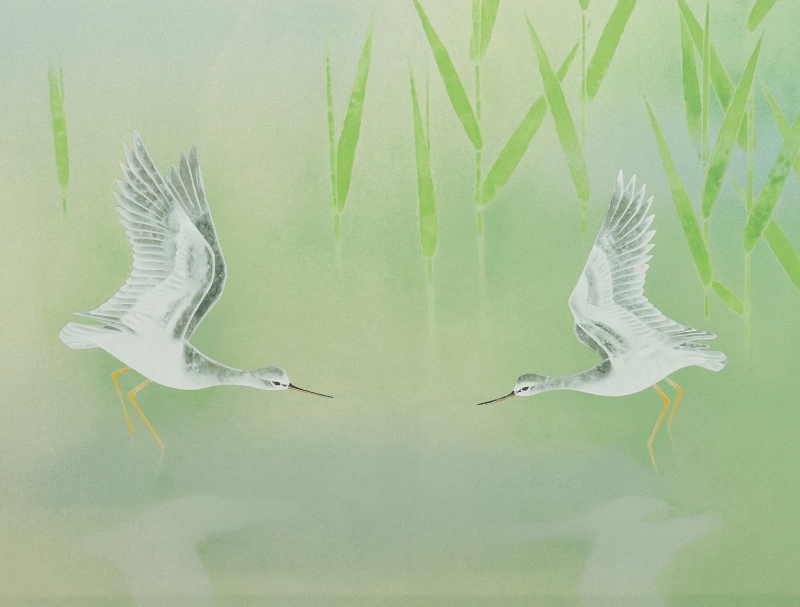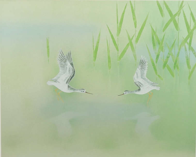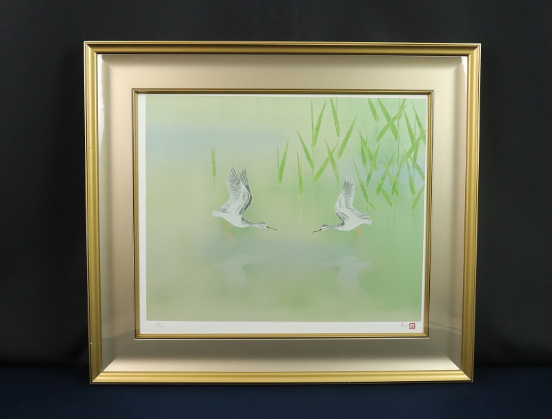 11182■【真作】上村淳之 「鴫」 シルクスクリーン 限定250部 直筆署名有 日本画家 上村松篁の子 額装 收藏