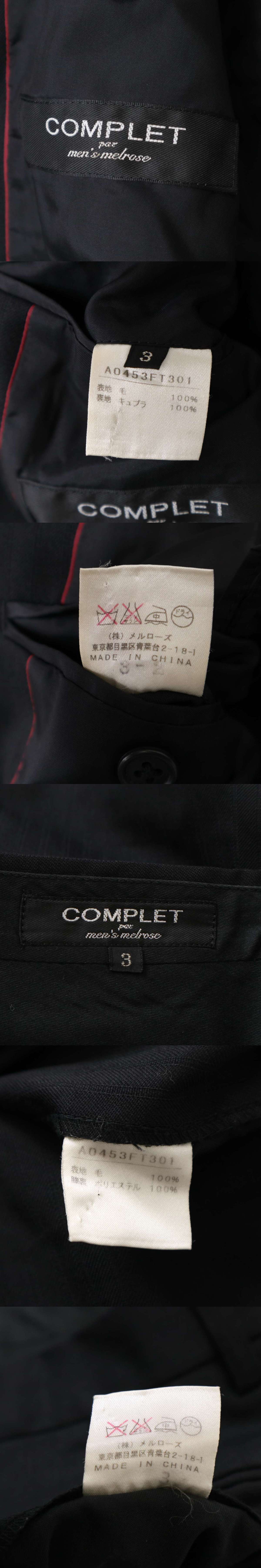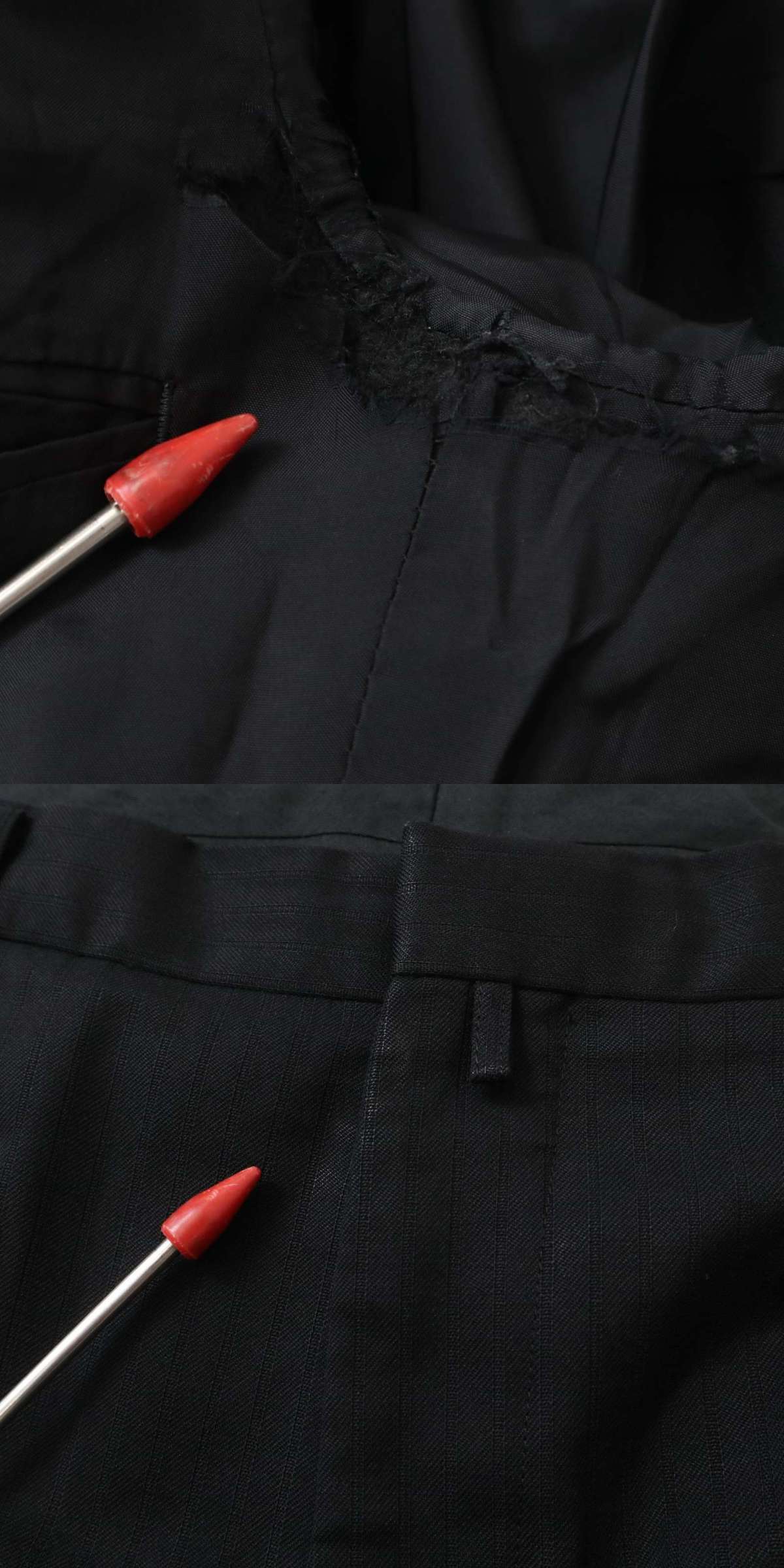 COMPLET par MENS MELROSE メンズメルローズ 通年 ウール100%★ ストライプ セットアップ スーツ Sz.3 メンズ 黒 收藏