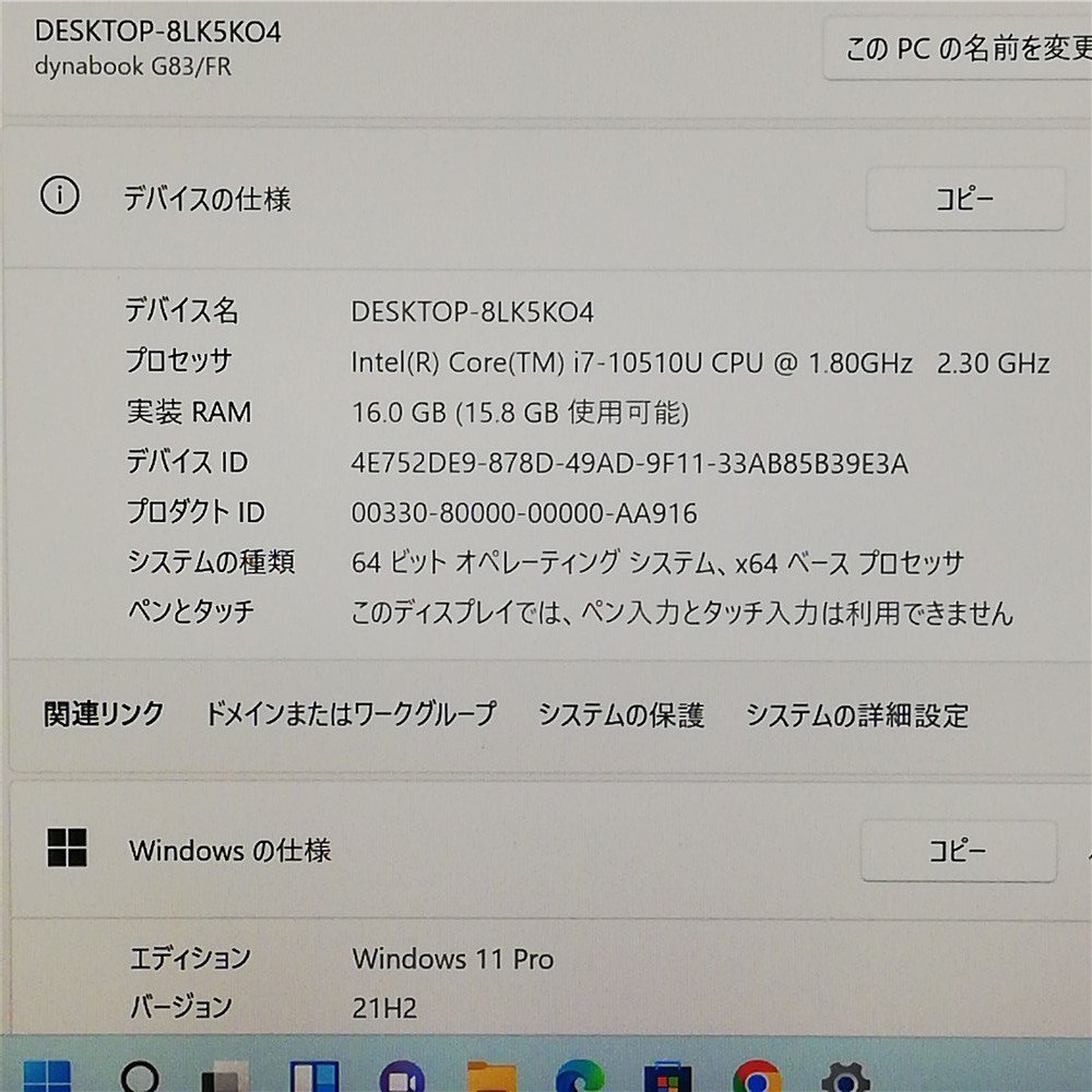 秋の大感謝祭 卸値 9台限定 新品SSD搭載 Wi‐Fi有 東芝 ノートパソコン G83/FR 中古美品 Core i7 10510U 16GB 無線LAN Windows11 Office済 收藏