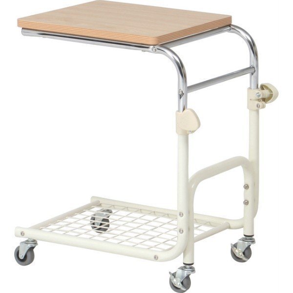 送料無料/縦伸縮式 ベッドテーブル キャスター付き 使いやすい片袖タイプ 下棚付き 看護 介護 幅42cm奥行52cm高さ73cm 天板ナチュラル/新品 收藏