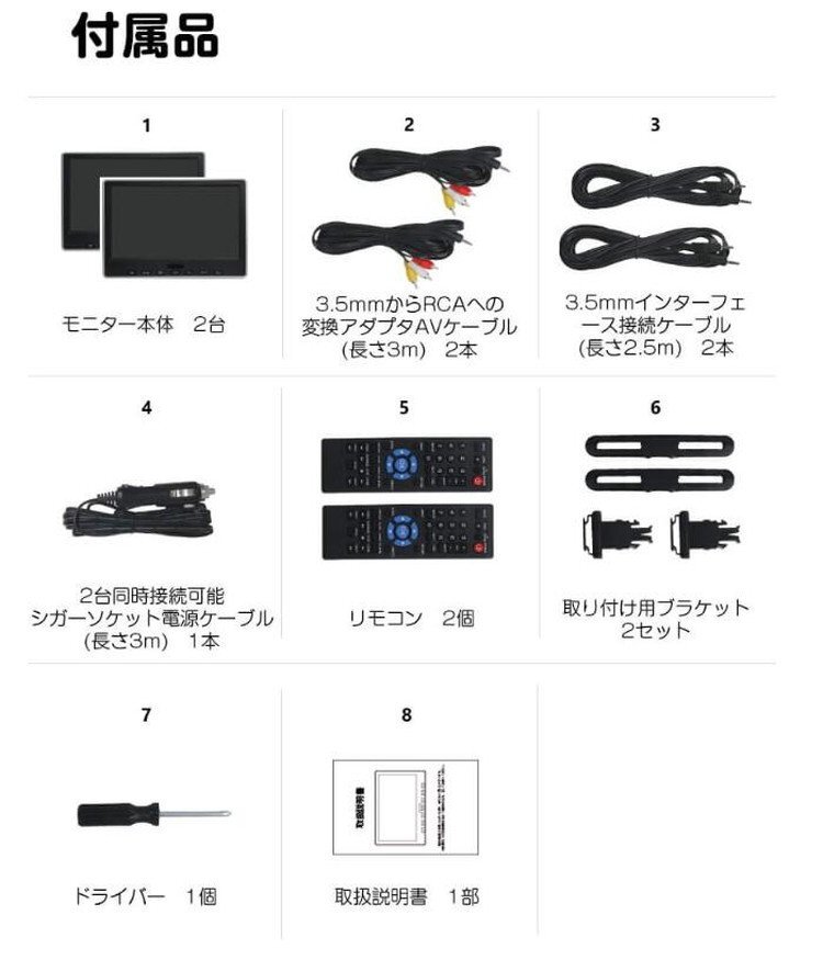 10.1インチヘッドレストモニター2台セット 後部座席用DVD内蔵モニター DVDプレイヤー CPRM対応 スロットイン レジューム機能 C0327J 收藏