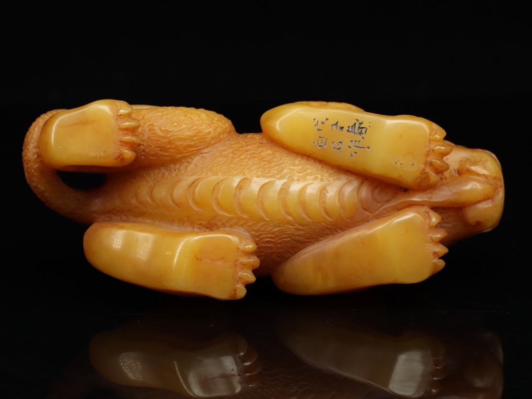 ◆御泓軒◆『金石篆刻 白石銘 寿山田黄石彫 瑞獣紋彫り件 共箱』極細工・古賞物・中国古玩・中国古美術 收藏