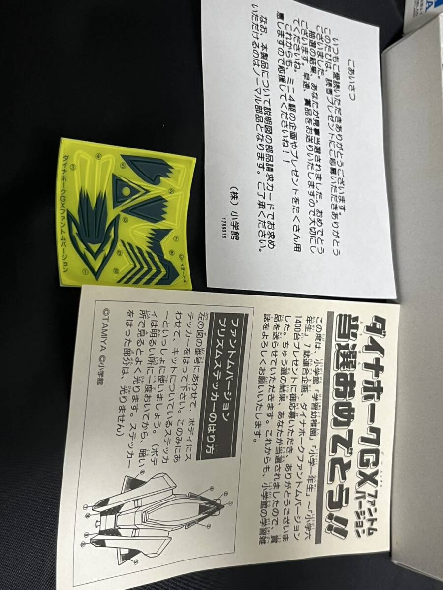 幻の小学館抽選プレゼント品のダイナホークGX蓄光仕様のファントムバージョン特製ステッカー付きの出品です。