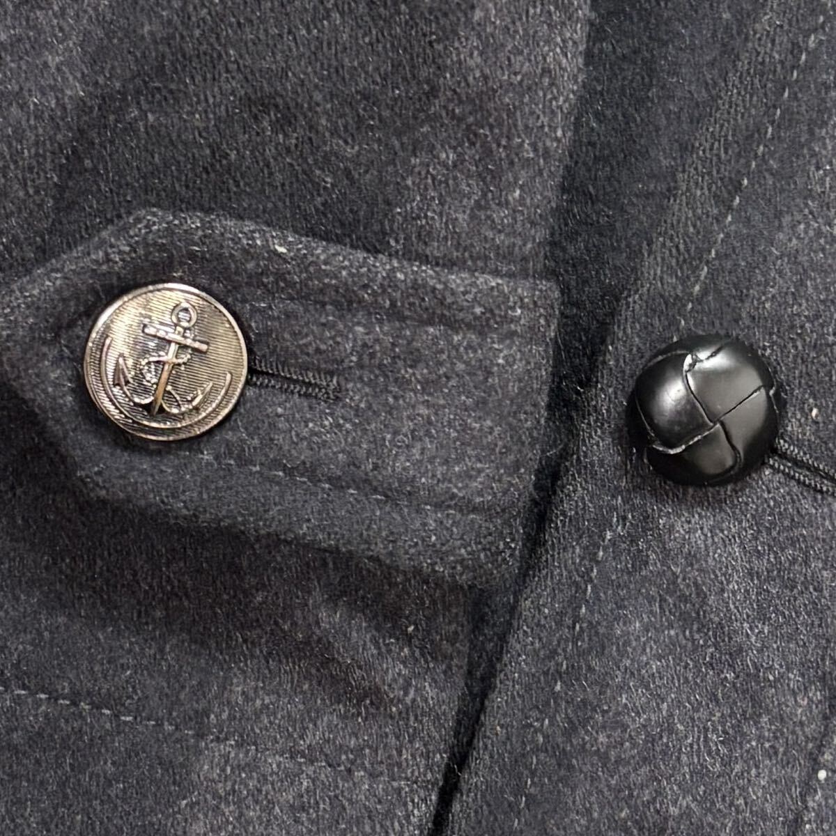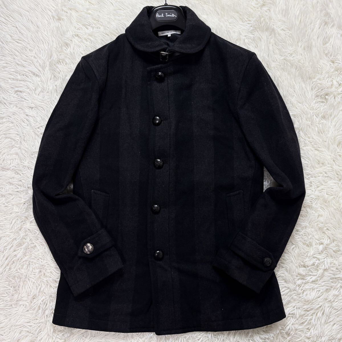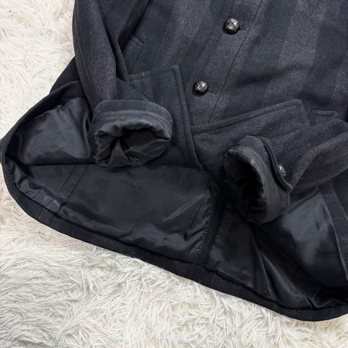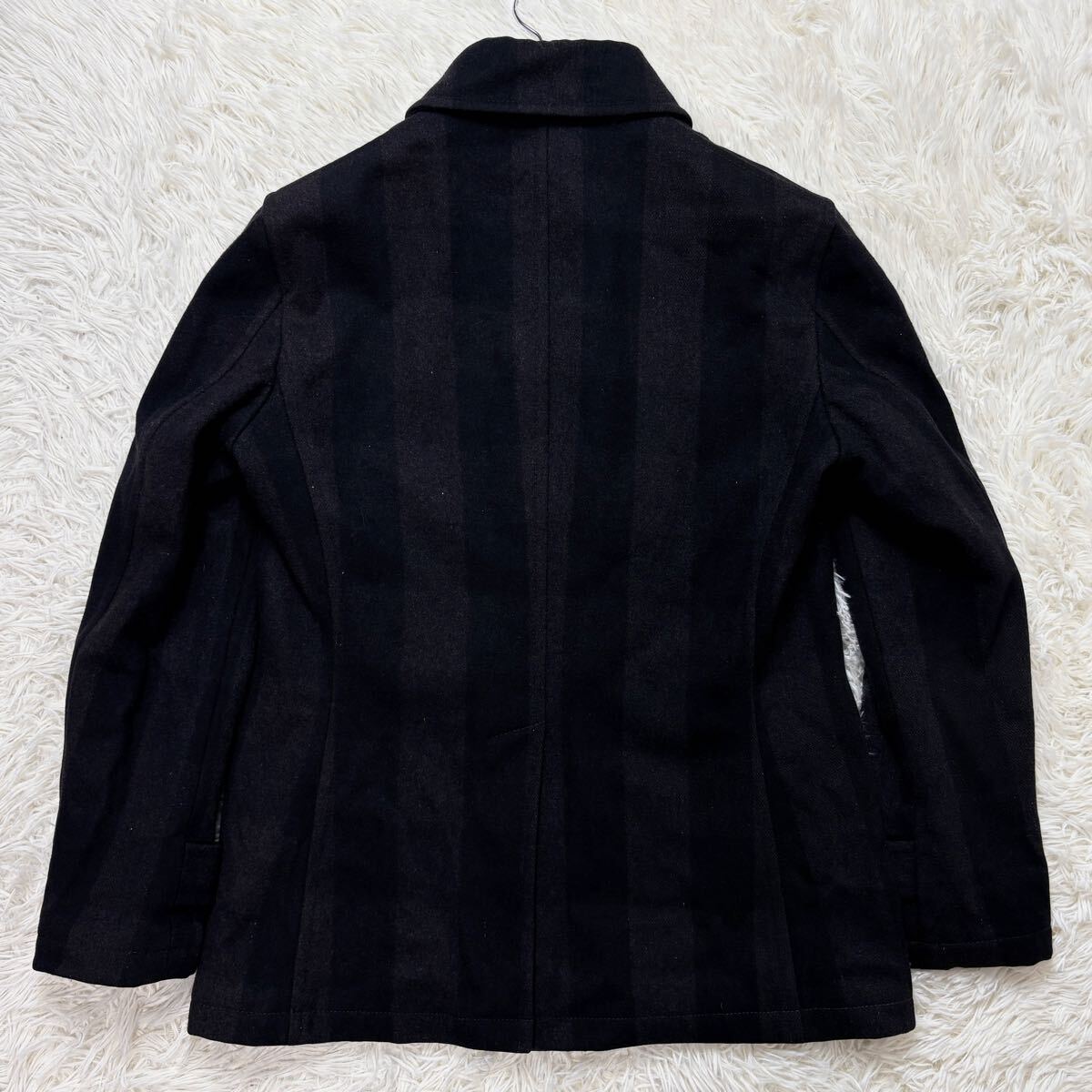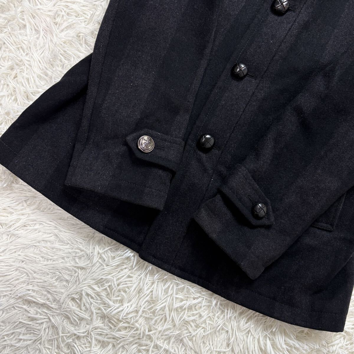 美品/希少デザイン ●UNITED ARROWS ユナイテッドアローズ マリンコート ジャケット シャドーストライプ くるみボタン 銀釦 レザー 牛革 黒 收藏