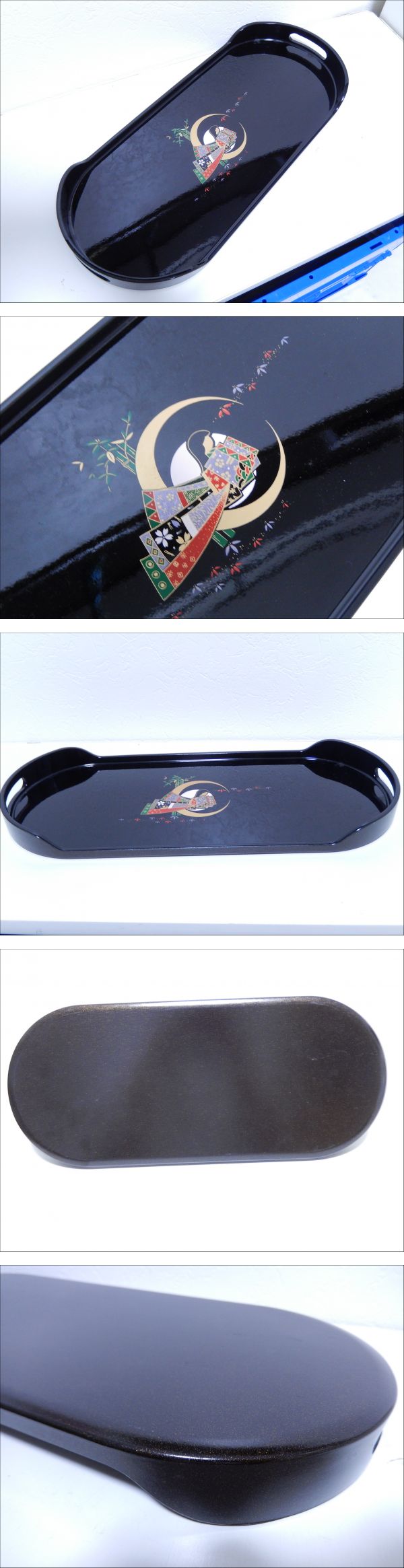 | 【管SH0646】2000円~ 漆塗 漆器 かぐや姫 蒔絵 手持ち盆 長盆 底梨地 古美術 骨董 | ||