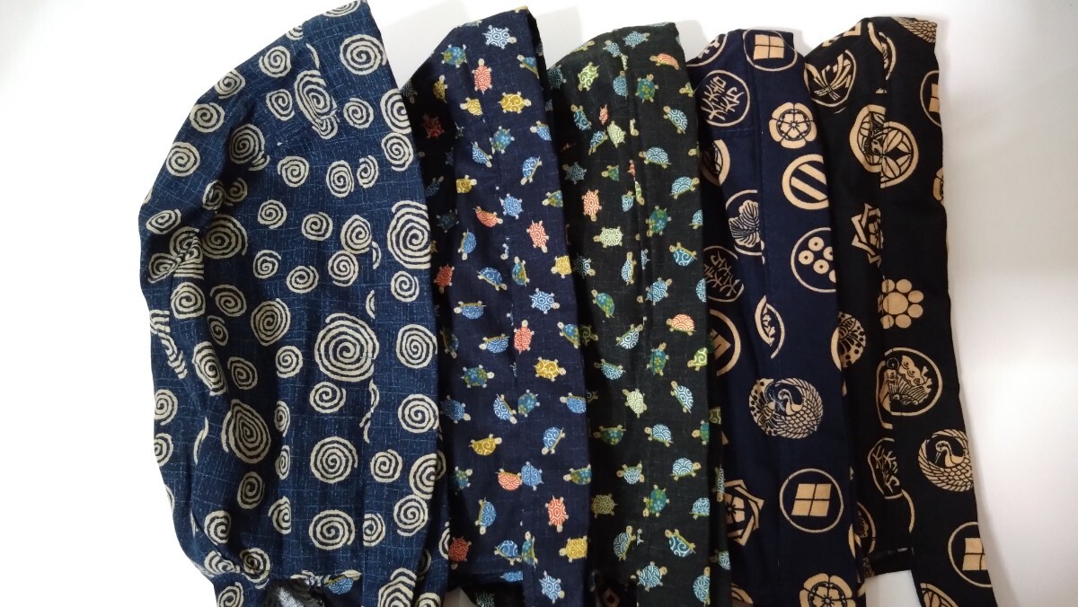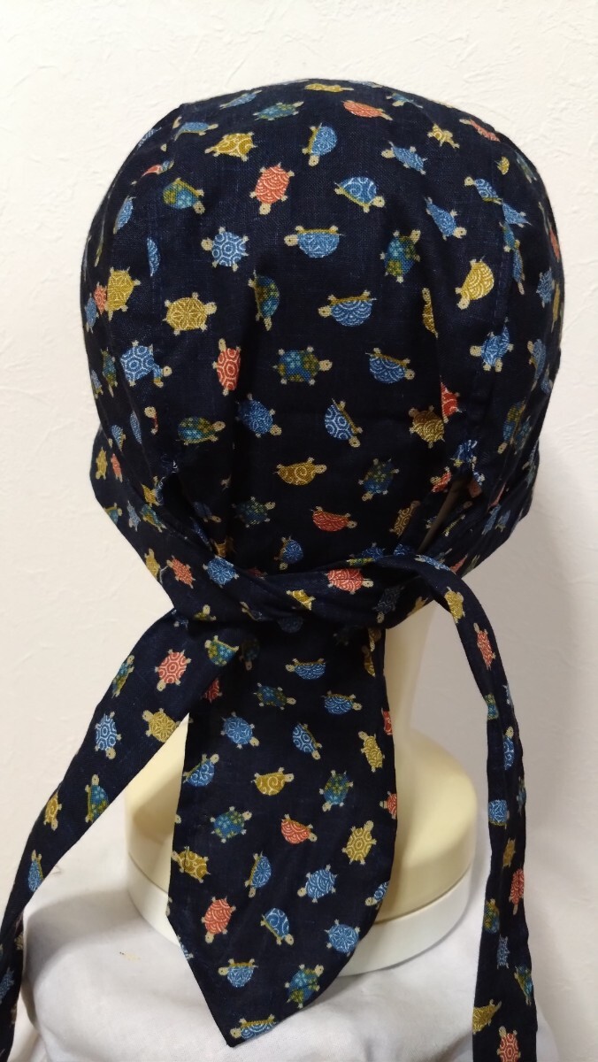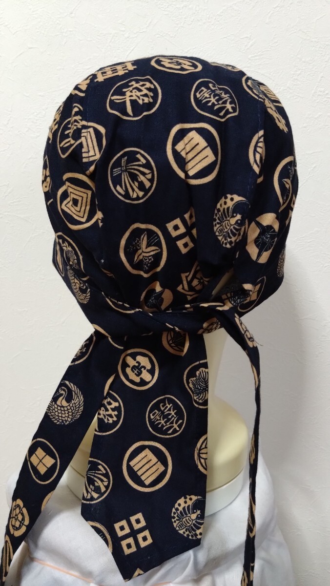 ★福袋 バンダナキャップ 5枚セット ハンドメイド 和柄 家紋 黒 紺 かめ 亀 うずまき 紺 收藏