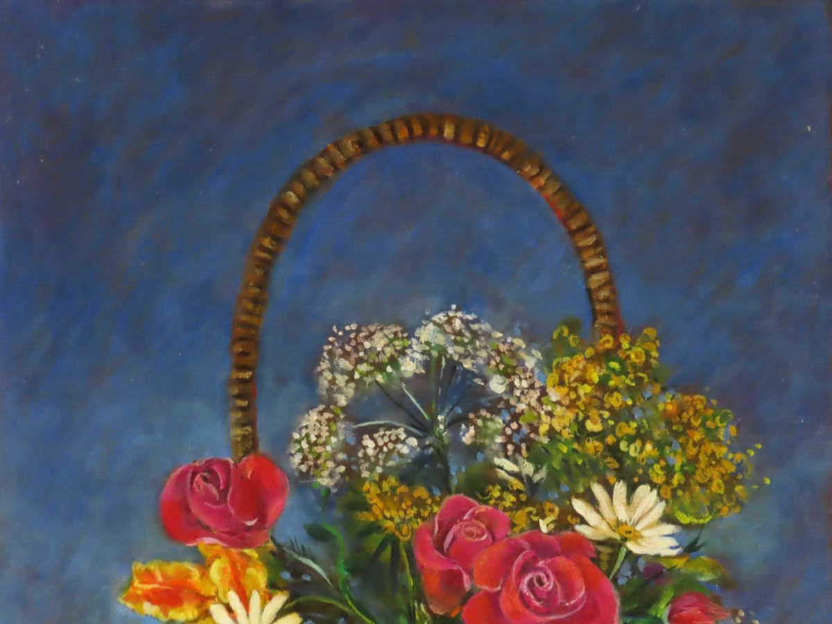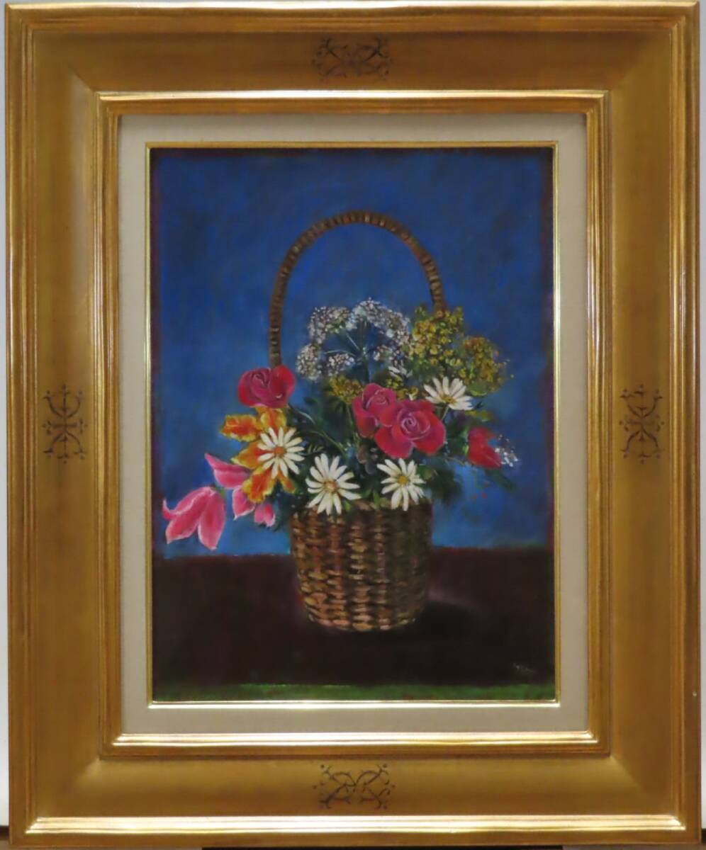 穂高「真作」 芸術院会員 山本 貞 「花 籠」 油彩 8号 共シール 收藏