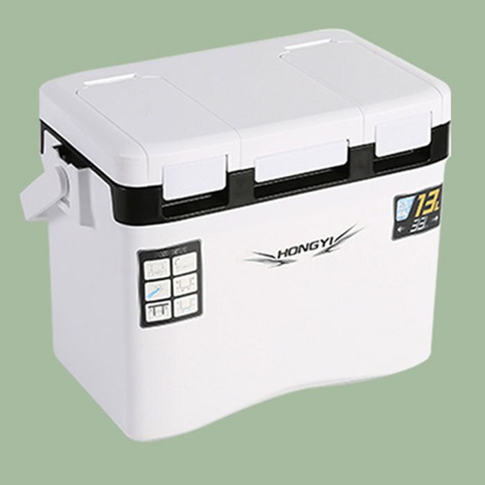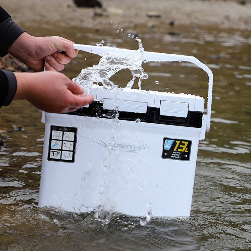 釣り用 クーラーボックス 小型13L ふた両開き 座れる頑丈ボディ 防水 保温保冷 ハンドル/肩ベルト付き 保冷力24-48h (ホワイト・窓付き) 收藏