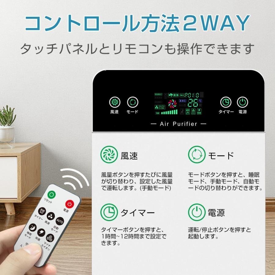 小型 2025最新改良 空気清浄機 最大42畳 6重空気清浄 3段階切替 リモコン付 UV除菌ライト マイナスイホン浄化 花粉対策 收藏