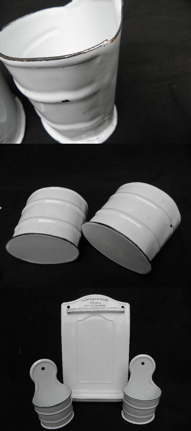 40 ホーロー ラック セル缶 3点 まとめて / アンティーク キッチン 琺瑯 壁掛け 収納 缶 ビンテージ 古道具 洋館 カフェ 收藏