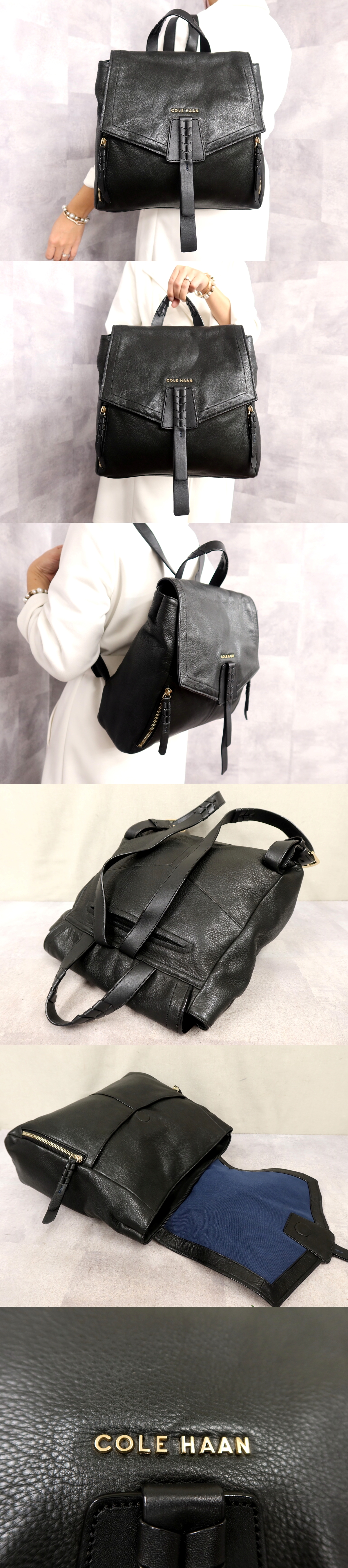●超美品●新品同様●COLE HAAN コールハーン●FELICITY●ロゴ金具●カーフ レザー 本革●リュックサック●黒●ゴールド金具●A4●Js62588 收藏
