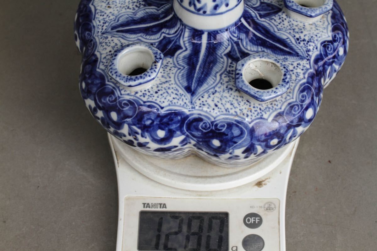 【久】2400 瀬戸焼染付多口花瓶 瀬戸焼 收藏