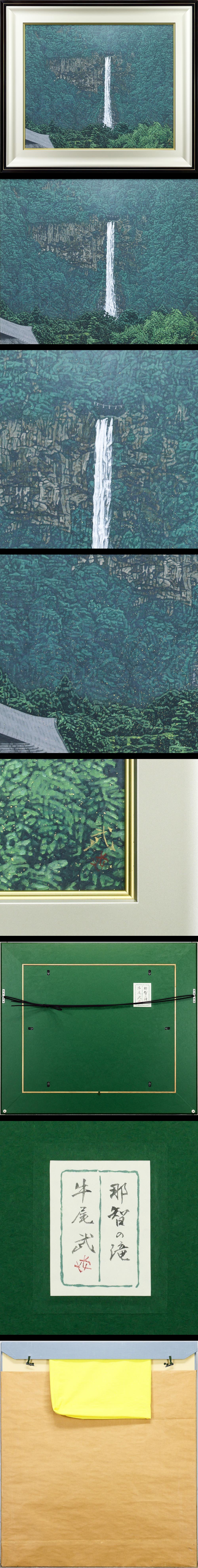 【真作】【WISH】牛尾武「那智の滝」日本画 20号 大作 金落款 金箔仕様 共シール ◆深緑に輝く白き滝名画 〇日本画壇巨匠 #25112390 收藏