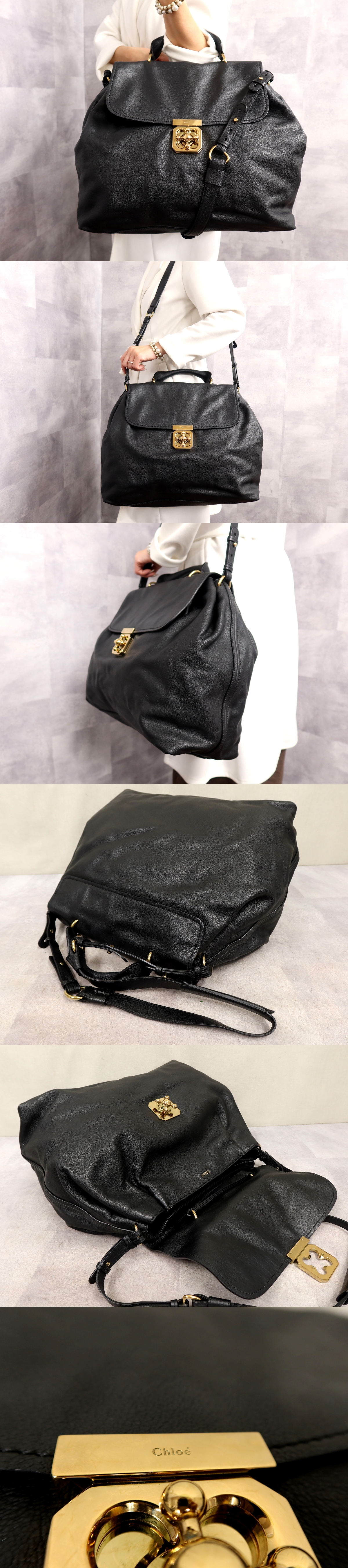 ●超美品●Chloe クロエ●エルシー●フラップ●カーフ レザー 本革●2way ハンド バッグ●黒●ゴールド金具●腕掛け●収納 かばん●Js62762 收藏