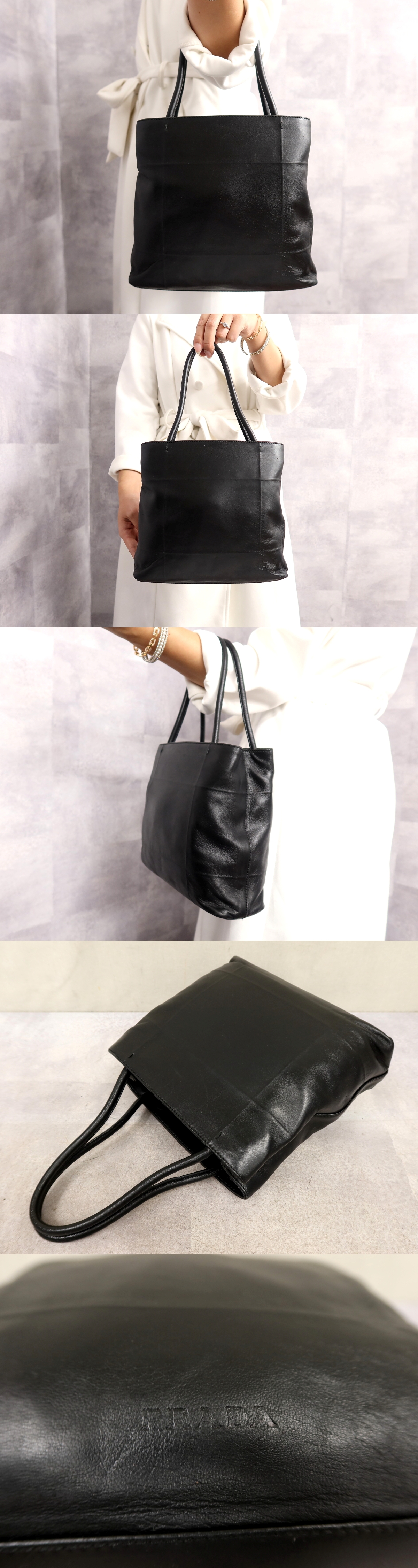 ●超美品●PRADA プラダ●ロゴ型押し●ナッパ レザー 本革●トート ハンド バッグ●黒●腕掛け●イタリア製●ヴィンテージ●収納●Js62980 收藏