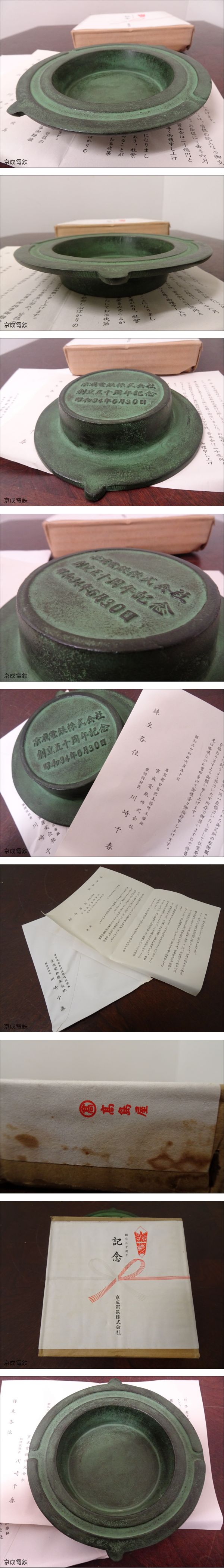 昭和34年 京成電鉄株式会社 創立五十周年記念 社章ロゴマーク型 灰皿 挨拶状付 | |||||||||
