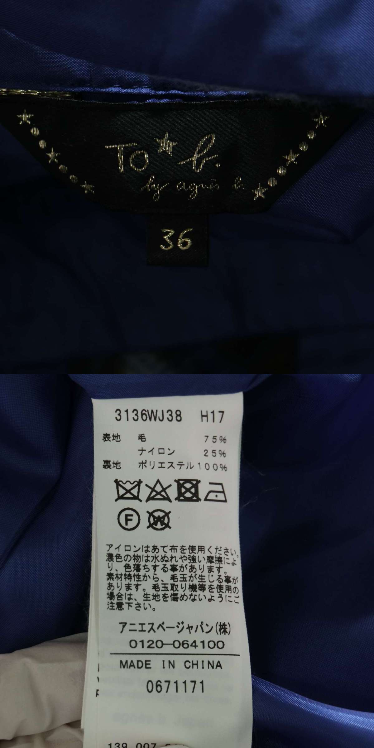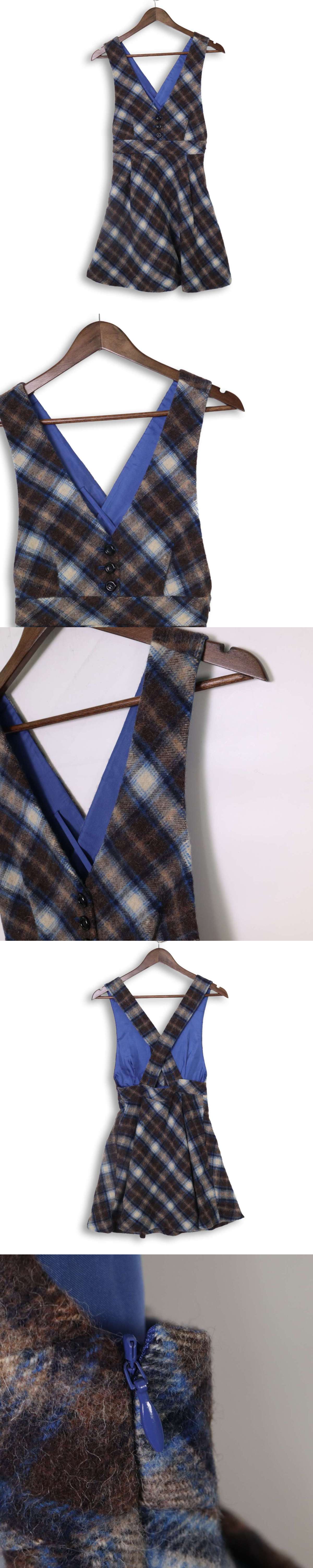 To b. by agnes b. アニエスベー 秋冬 ウール★ チェック ジャンパー スカート ワンピース Sz.36 レディース 收藏