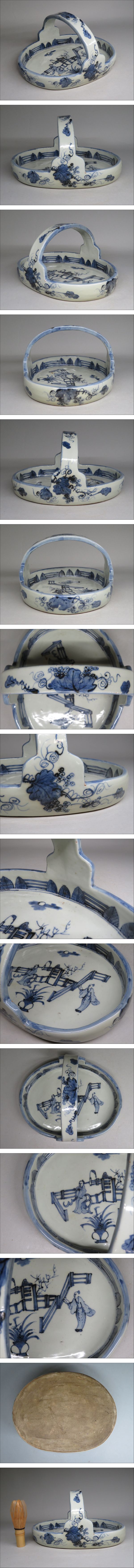 | 「コレクター所蔵品」◆江戸後期~明治期 古伊万里 染付人物葡萄文手付鉢 手付き菓子鉢 ◆検:伊万里焼/有田焼/鍋島焼 | ||