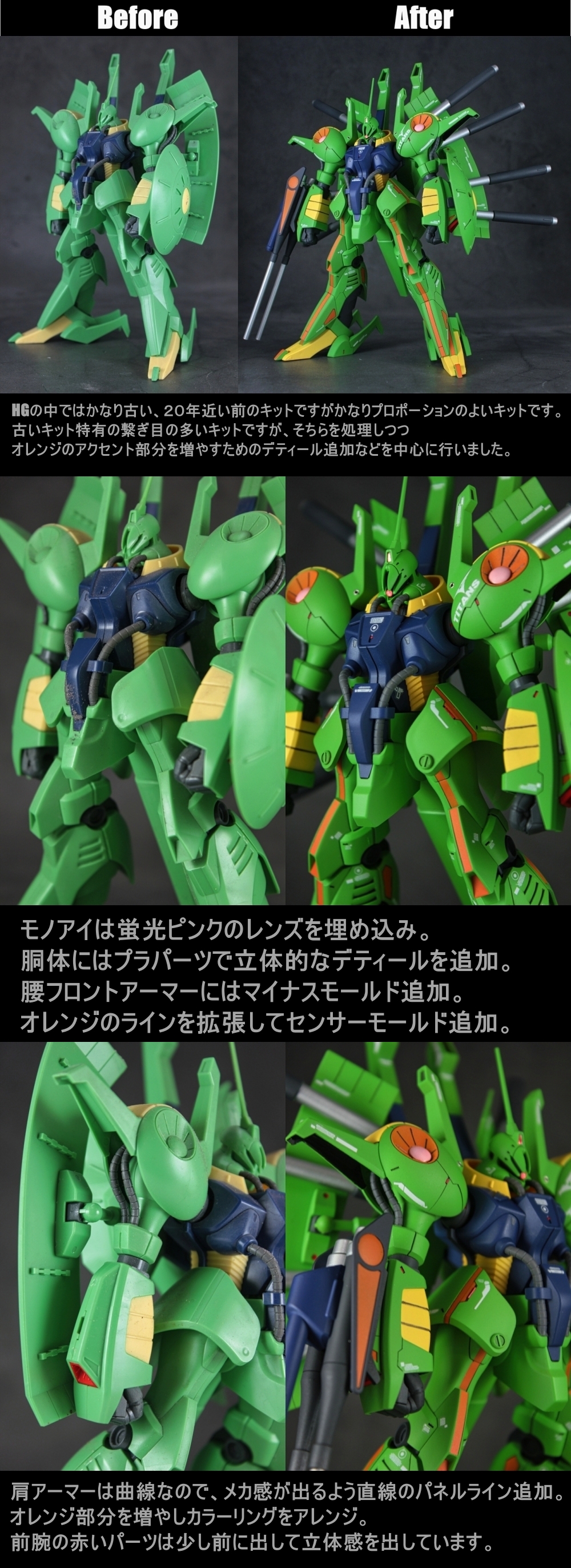 古いキット特有の繋ぎ目の多さを処理しつつ、丸みを帯びたフォルムを機械的にしたり