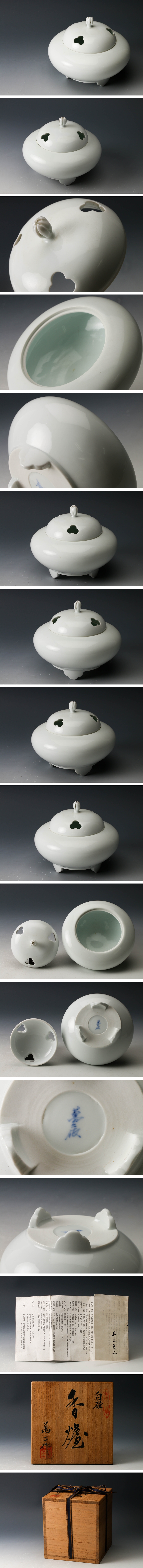 【佳香】人間国宝 井上萬二 本人作 白磁香炉 共箱 栞 茶道具 本物保証 收藏