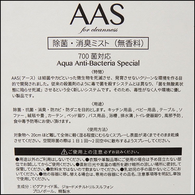 ◆AAS アース(小)◆除菌・殺菌・防カビ・防ダニ・消臭ミスト◆詰め替え用 AAS1000 收藏