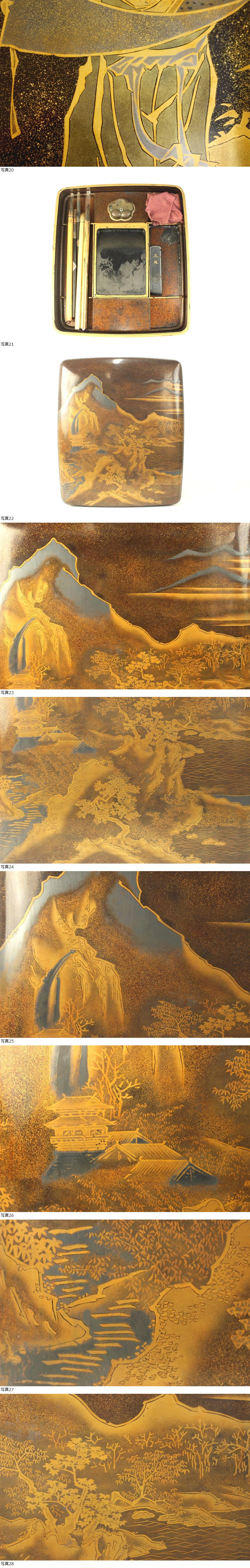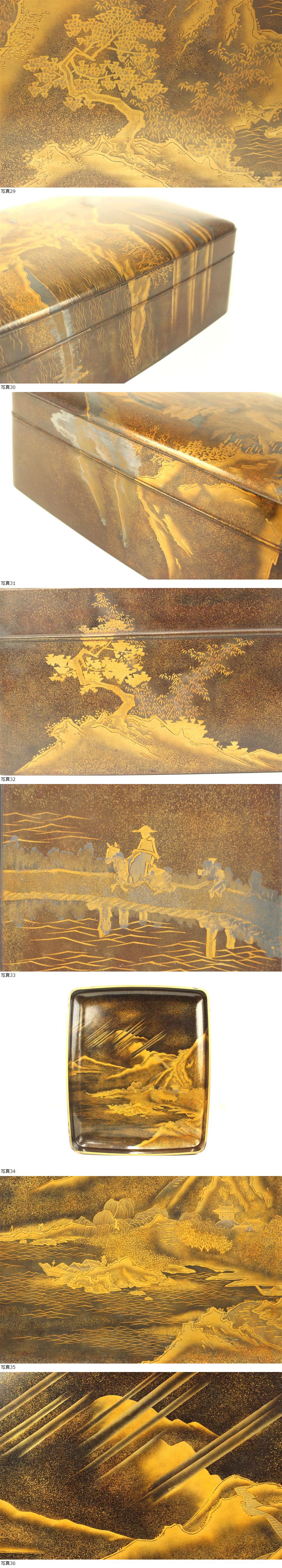 【董芸】江戸時代 美術館級 極上金蒔絵 唐山水図 見返寒山十得図 硯箱 文箱 旧家委託品 [A164133] 收藏
