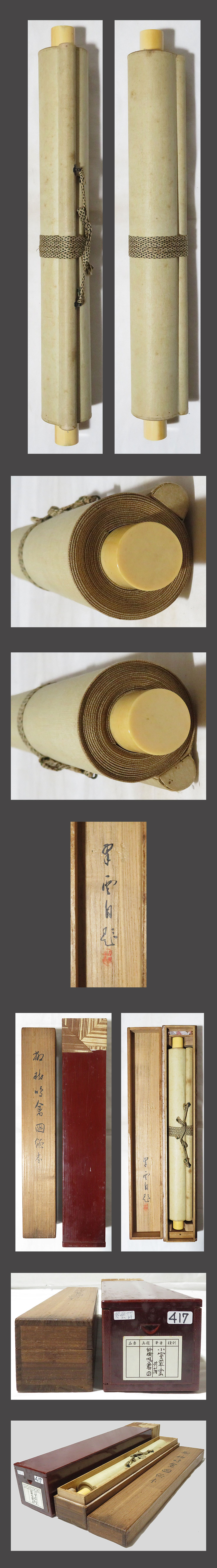 ・掛軸の軸先ですが、細心の注意を払って梱包しておりますが、 配送中の振動・気温・経年劣化等で外れてしまうことがあります。 軸先の外れは、破損ではございませんので、返品の対象にはなりません。 大変お手数ですが、お客様ご自身での修復をお願い致します。 ・添付写真の画像と説明文でご理解頂ける方、ご入札を宜しくお願い致します。 ・添付写真の画像は撮影の光度により、現物と若干の色合いの相違が生じる事があります。 ・添付写真の画像は受取完了のご連絡を頂いた後に速やかに消去しますのでご了承下さい。 ・土・日・祝日はお休みさせて頂きますので、商品発送は、月曜日以降になります。 ・祝日の場合は、翌日の平日以降の発送になります。 ・土・日・祝日は、メールの返信が若干遅れる事がございます。どうか、ご了承下さい。 ・時間的に余裕がない場合などでお答えが出来ない事も多々有ります。 ご不明な点は落札日前日までに早めにご質問下さい。 ・商品トラブルがあった場合は、直ちにご連絡下さい。 お取引に付きましては迅速・丁寧に対応させて頂きます。 ・落札後、できるだけ2日以内に連絡(返信)を頂ける方、 5日以内にご入金できる方の御入札を御願い致します。 ・新規の方や評価の総評が悪い方は当方の判断にて、入札取り消しを行う場合がございます。 ・お取引に付きましては、迅速、丁寧に対応致しますのでどうぞ、宜しくお願い致します。 ・古美術品や古物や古書画の出品が多いため、神経質な方がご入札される場合は、 ご自身が納得の行く価格でご入札ください。 ・万一、ヤフーのシステム障害により、公正なオークションができなかったまま終了し、 落札者様にご落札された場合は、当方より取引ナビで取引中止のご連絡を致します。 その時は、どうか、ご了承をお願い致します。 ・終了当日・直前の入札の取り消しは、 トラブルの原因となりますのでご遠慮お願い致します。 ・入札後の取り消し(キャンセル)は行っておりません。 ・落札後のキャンセル・返品はお断りしてます。 入札前によくご確認頂き、間違いのないようにご注意下さい。 |