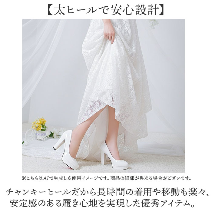 | 商品説明 | ・・【太ヒールで安定感抜群】 ・12cmヒールでも歩きやすい、 ・晴れの日を優雅に彩るウェディングシューズ。 ・ ・【12cm美脚ヒール】 ・高さ12cmのヒールが脚のラインを美しく見せ、 ・ドレス姿をより華やかに演出してくれる一足◎ ・ ・【太ヒールで安心設計】 ・チャンキーヒールだから長時間の着用や移動も楽々、 ・安定感のある履き心地を実現した優秀アイテム。 ・ ・【上品フォーマル】 ・結婚式や披露宴、パーティーシーンに映える洗練されたデザインで、 ・花嫁姿を引き立てる特別な存在感♪ |