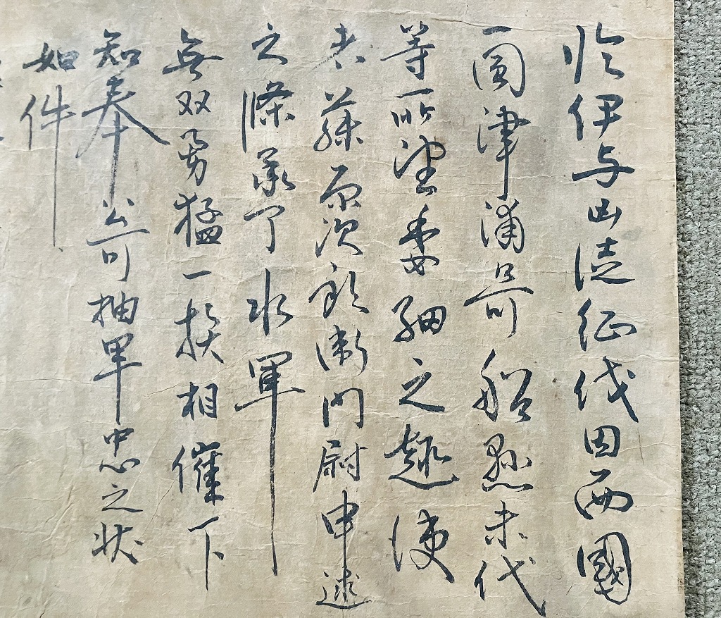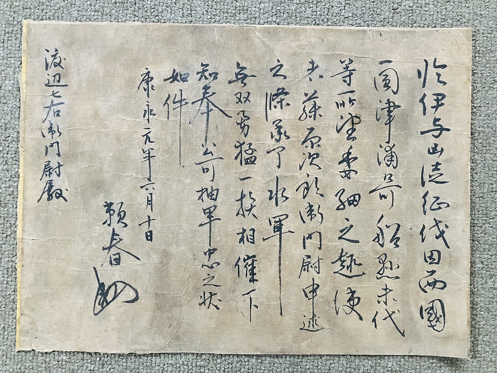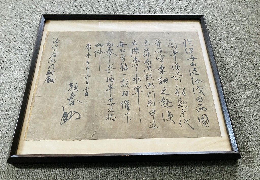 ★【細川頼春・花押】 詳細不明 古書 古文書 消息文 『康永元年(南北朝・1342年)・渡辺七右衛門尉宛』 額入★ 收藏