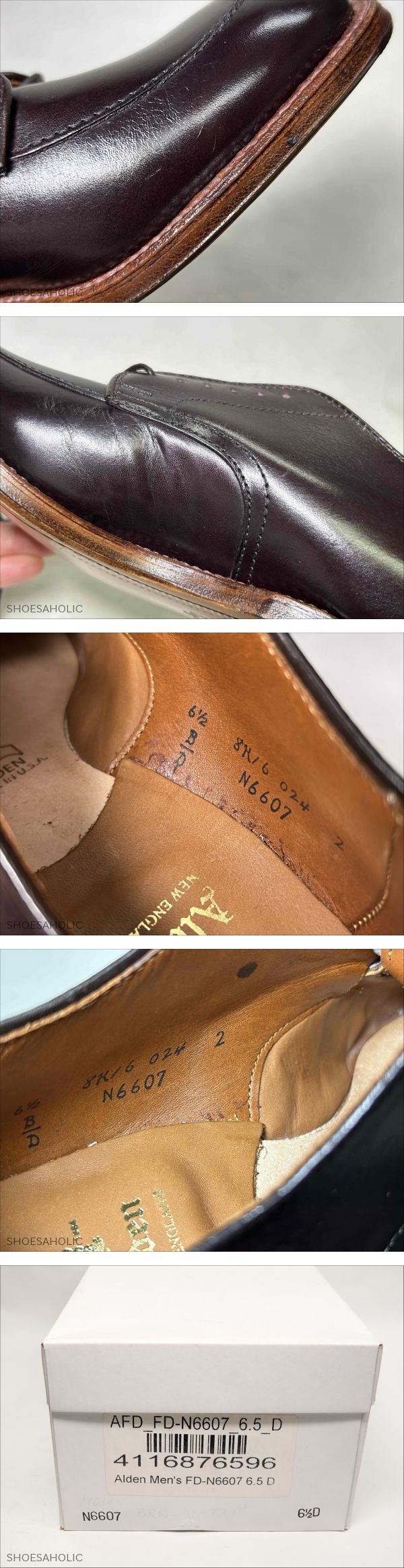270 / 0212 おすすめ!! 試着程度 オールデン Vチップ バーガンディー カーフ 6.5D #N6607 リジェクト品 收藏