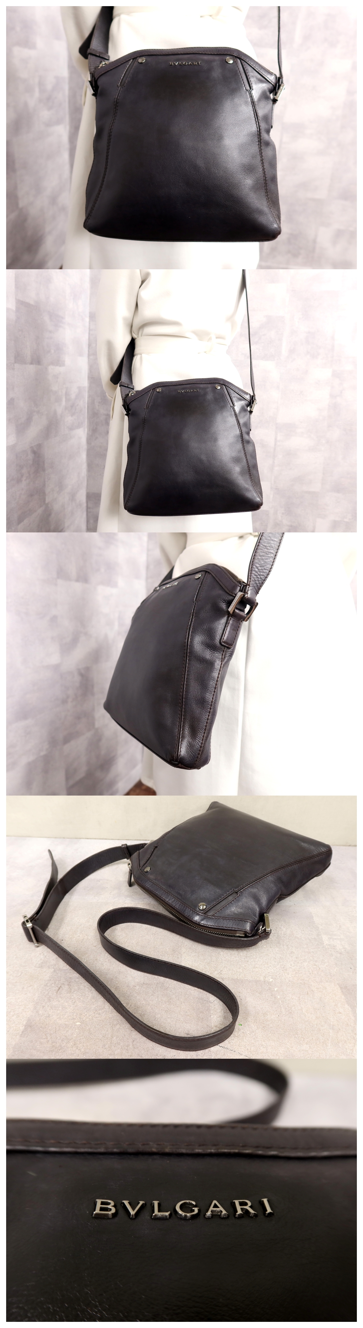 ●美品●BVLGARI ブルガリ●メンズ●オクト●ロゴ金具●カーフ レザー 本革●ショルダー バッグ●ダークパープル●B5 ビジネス●Js65103 收藏
